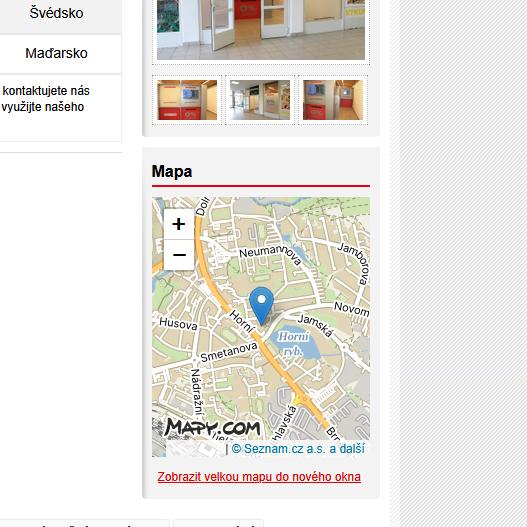 Jednoduché zobrazení umístění každé pobočky na mapě.