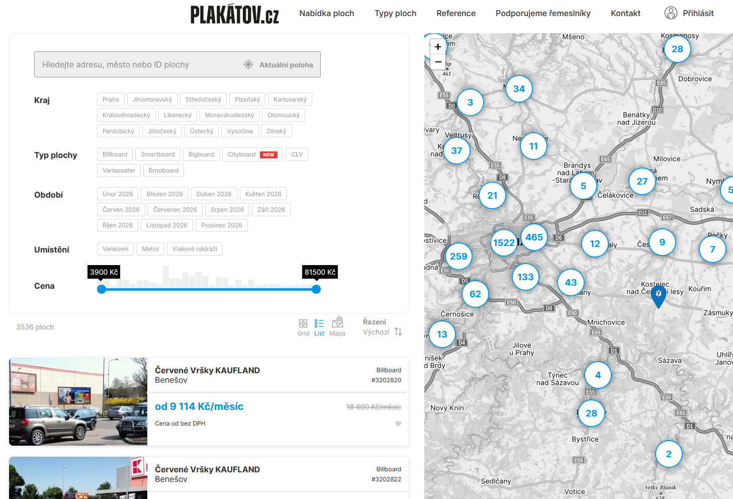 služba umožňující vyhledávání reklamních ploch pro kohokoliv, lze si plochy objednat přímo.