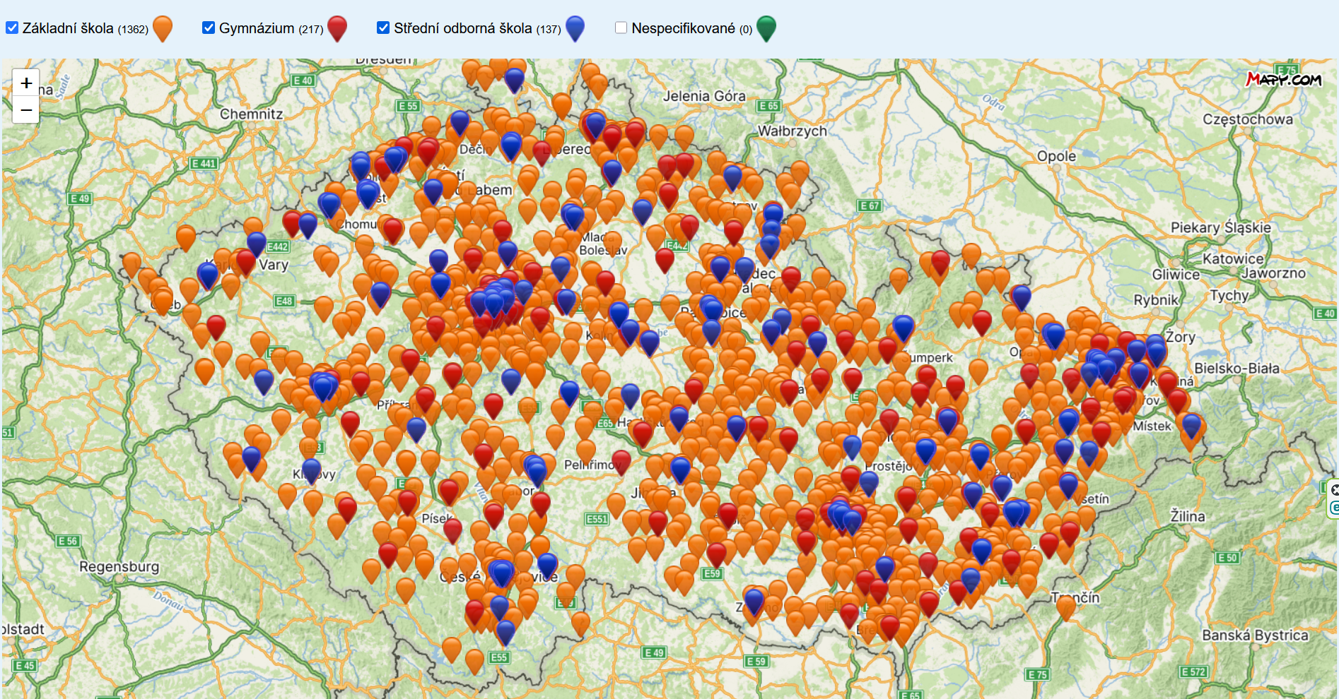 API používáme pro zobrazení mapy škol, které se soutěže účastní, viz https://ibobr.cz/mapa2/ Díky tomuto API učitelé při registraci zadávají, kde se jejich škola nachází. Rozhraní jsme vybrali z důvodu přehlednosti a srozumitelnosti pro uživatele a snadné implementovatelnosti pro vývojáře.