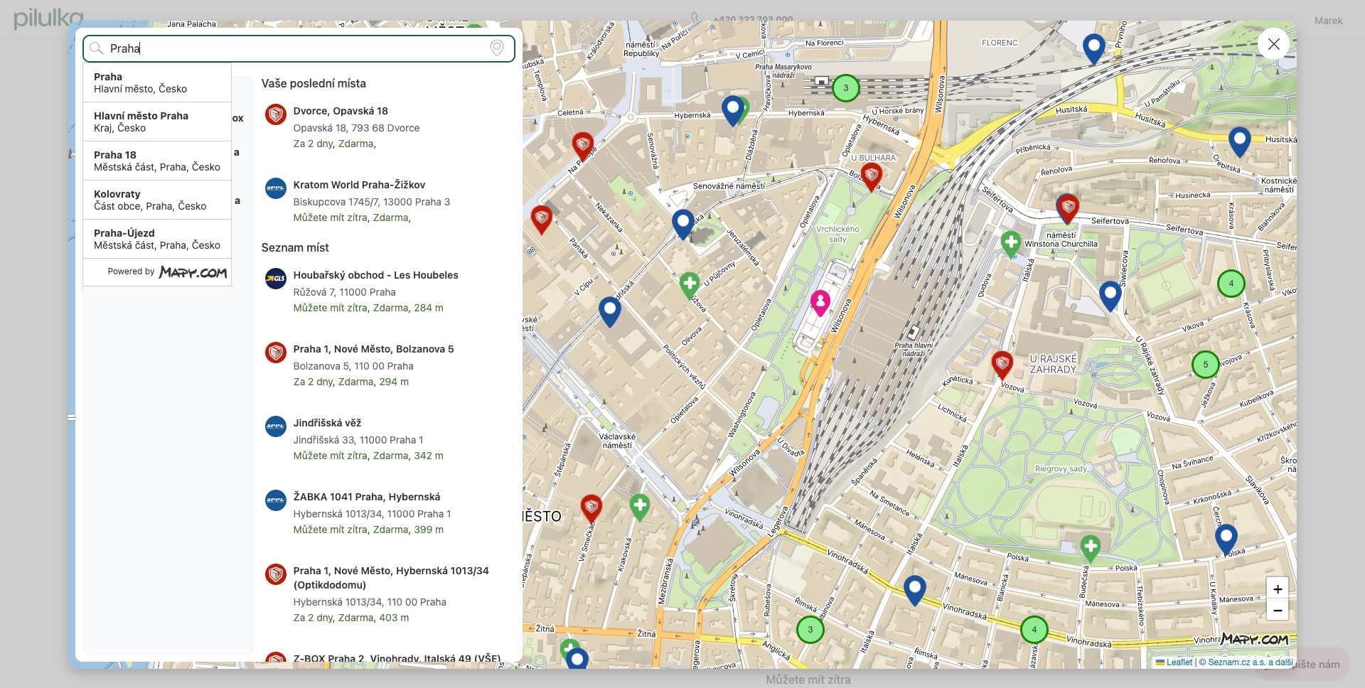 Výběr odběrných a našeptávač adres míst v procesu nákupu.