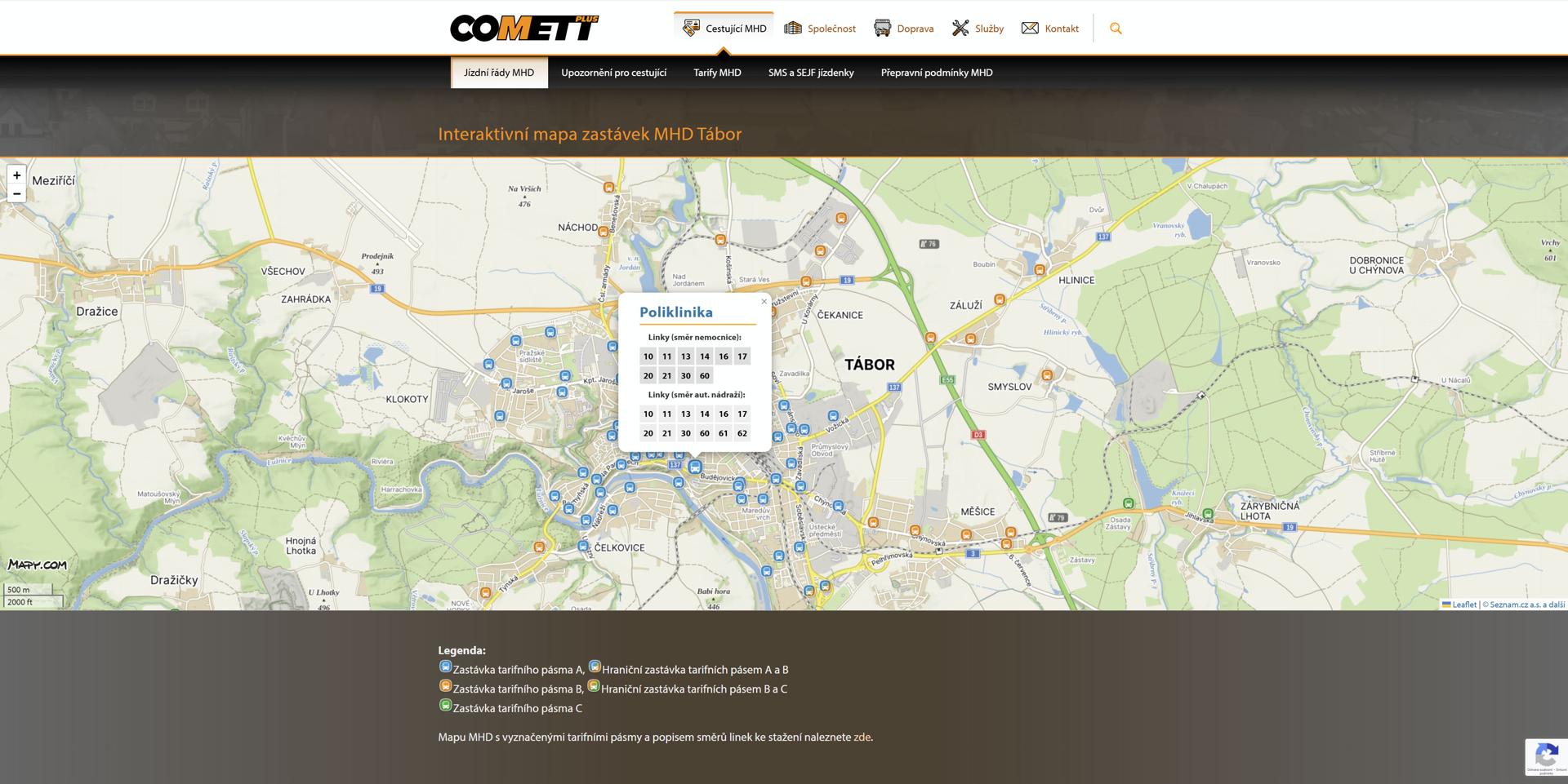 Webová aplikace pro zobrazení zastávkových jízdních řádů MHD Tábor - Sezimovo Ústí - Planá nad Lužnicí umožňující volbu zastávky z mapy. Současně obsahuje intuitivně zobrazuje tarifní pásmo dané zastávky.