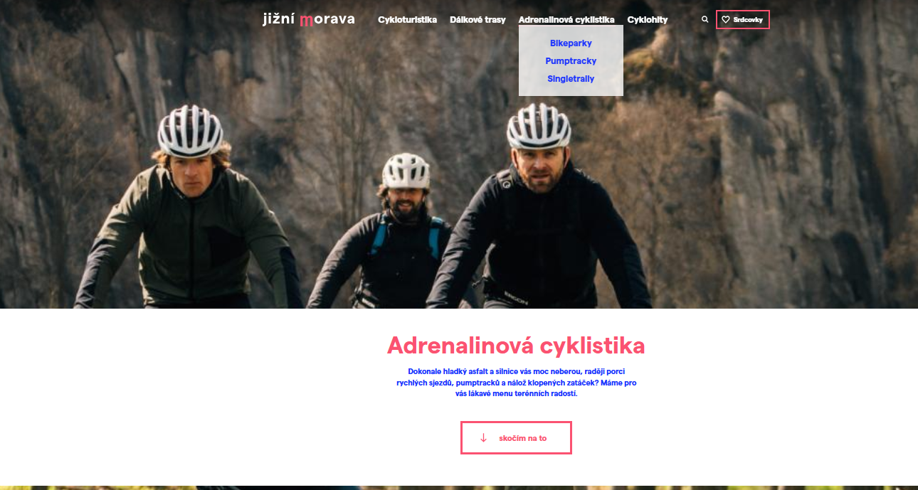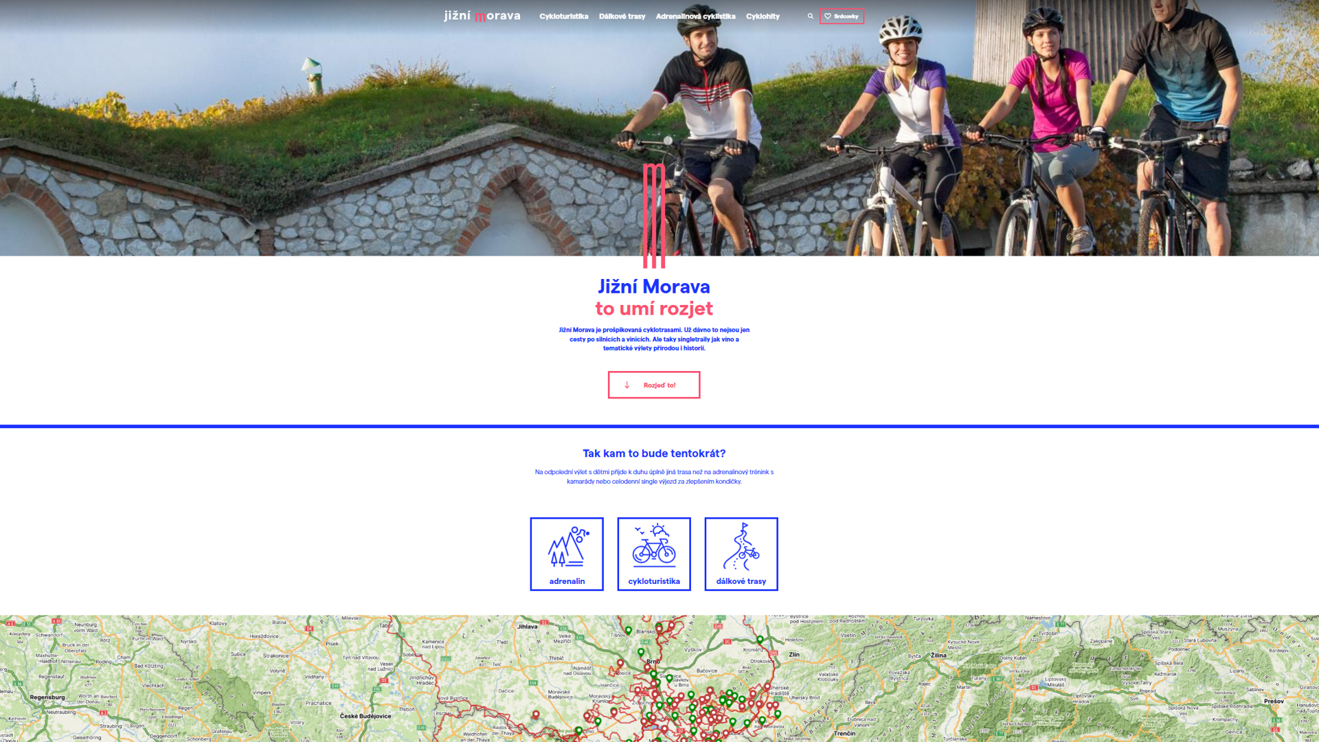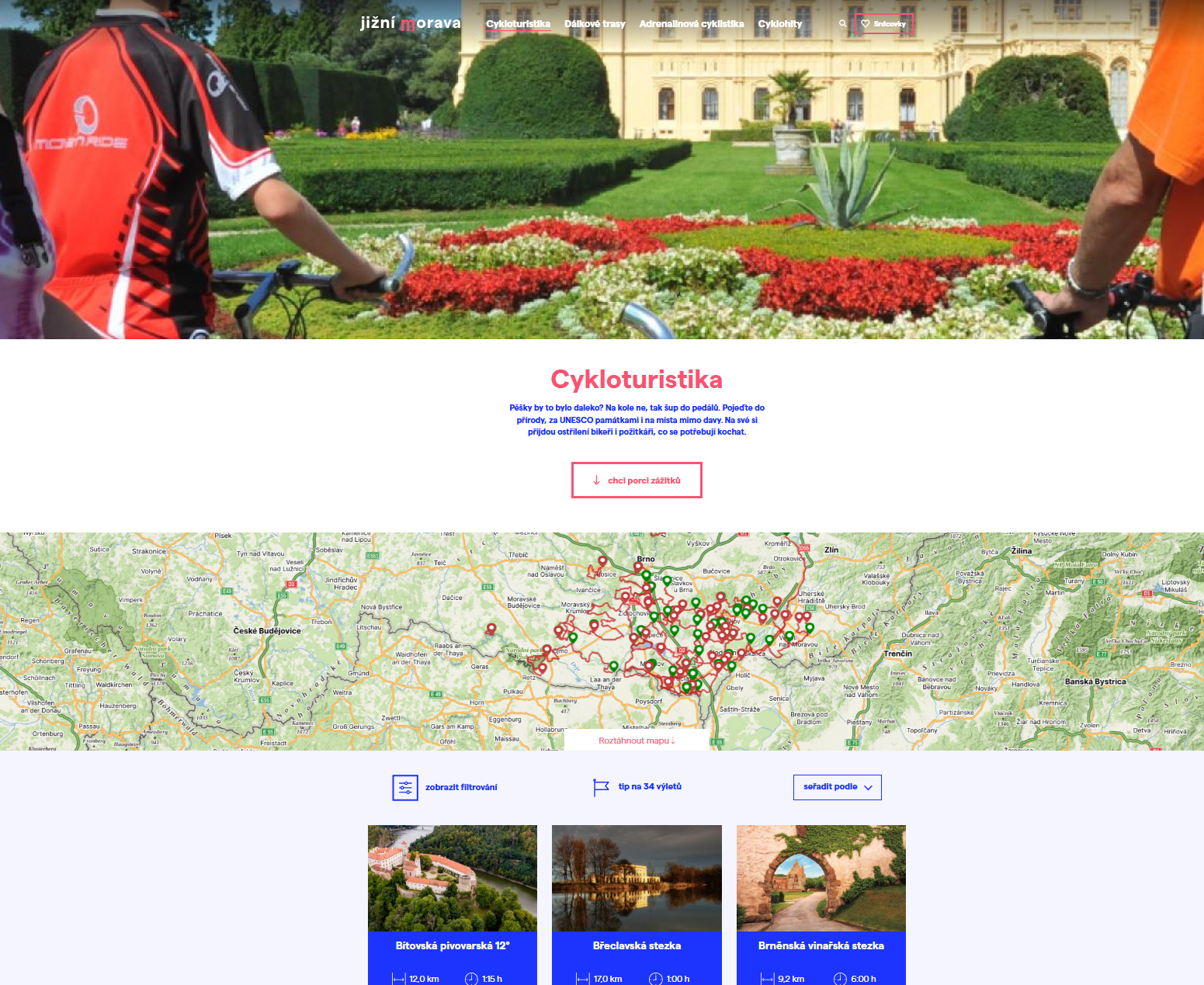 Web cyklo.jizni-morava s mapou tras a zajímavostí.