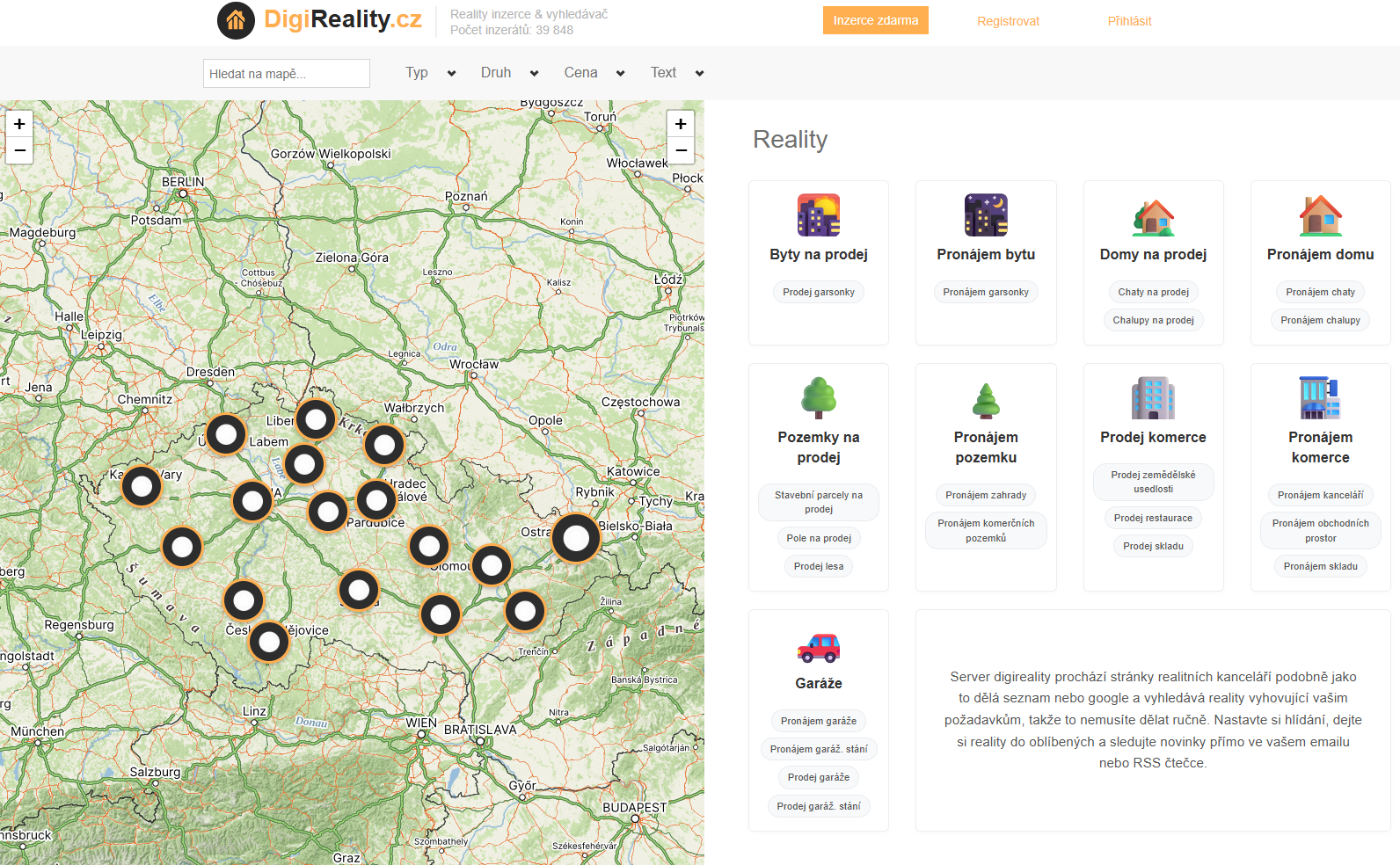 Digireality.cz je webová platforma pro vyhledavani realit, která integruje Mapy.com API pro poskytování mapových dat. Naše řešení umožňuje vyhledávání a intuitivní navigaci na mapách.