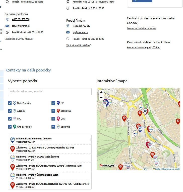 V našem e-shopu Mironet.cz využíváme API Mapy.cz v objednávkovém procesu, kde zákazníkům zobrazujeme výdejní místa přepravců. Díky tomu mohou snadno a přehledně vybrat nejbližší a nejvhodnější místo pro vyzvednutí své objednávky.