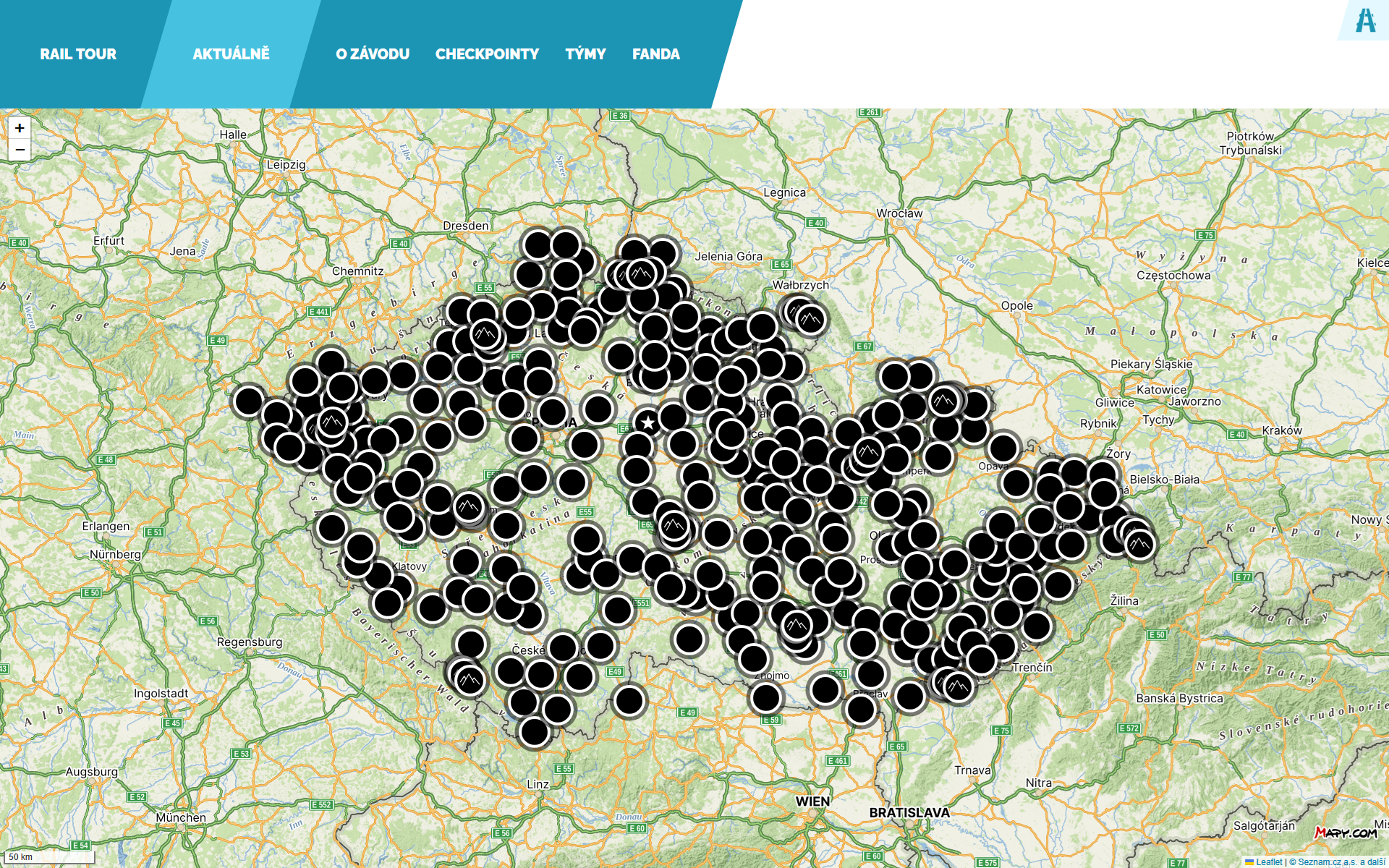 Po celý průběh závodu u sebe týmy mají GPS lokátory, které každé 4 minuty ukazují na mapě polohu týmu. Zde jsou také zobrazovány vylosované checkpointy. Pro vykreslení mapy a všech ostatních prvků je použito API Mapy.com. Vzhledem k potřebě českých turistických map bylo toto API jasná volba.
