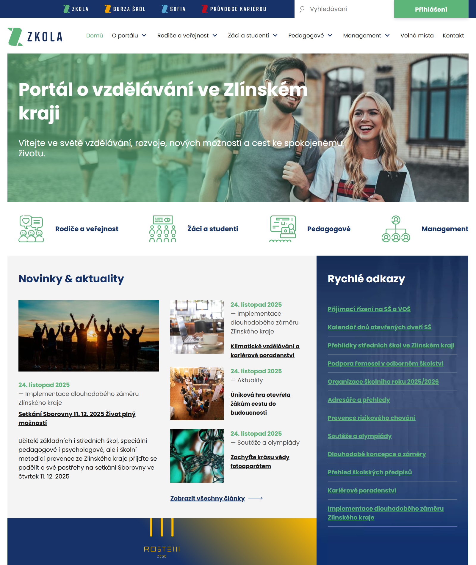 Od roku 2004 je ve Zlínském kraji provozován regionálně významný a ojedinělý projekt informačního portálu o vzdělávání a školství Zkola.cz. Rozsáhlý internetový portál vznikl z iniciativy Zlínského kraje jako služba školám, žákům i jejich rodičům a široké veřejnosti.